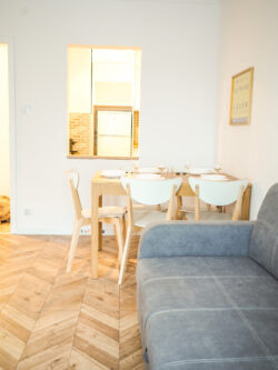APARTEL Królikarnia to dwupokojowy apartament o powierzchni 36m2, dostępny na wynajem krótkoterminowy. Mieszkanie mieści się na 5 piętrze bloku na Warszawskim Mokotowie. Apartament przeszedł gruntowny remont w roku 2021. Mieszkanie wykończone jest w ciepłym i nowoczesnym stylu.