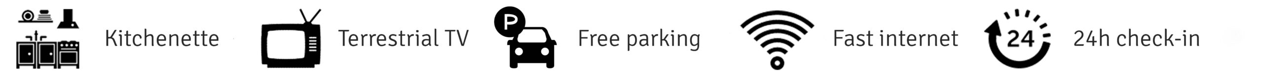 This apartment can sleep a maximum of 2 adults and 1 child >3 years old. It is equipped with a large hotel bed (160×200) that can be transformed to two smaller beds (80×200) and a crib for an infant.