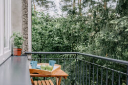 Z części sypialnej można wyjść na duży 5m2 balkon z widokiem na ogród i spokojną okolicę. Na balkonie jest stolik i miejsce do siedzenia dla 2 osób. Na balkonie można palić papierosy.