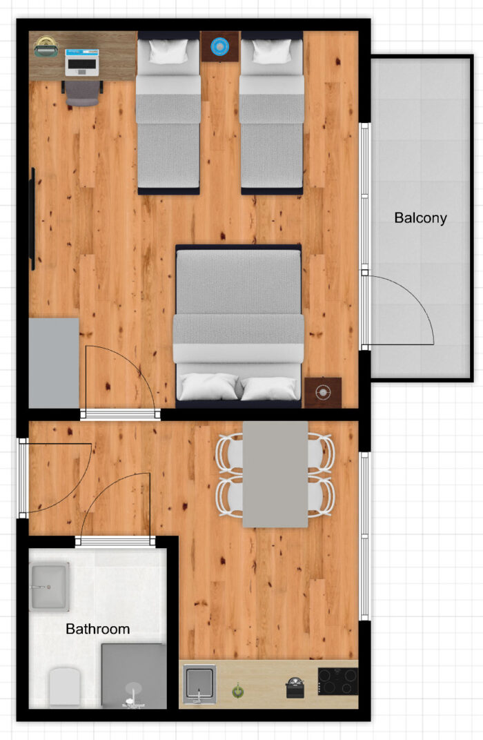 APARTEL Piaseczno Deluxe to nowocześnie wykończone studio które może pomieścić maksymalnie 4 osoby na 4 oddzielnych łóżkach(80×200). Łóżka można łączyć i rozdzielać. Apartament wykończony jest w ciepłym i nowoczesnym stylu.