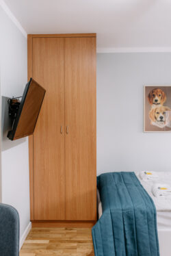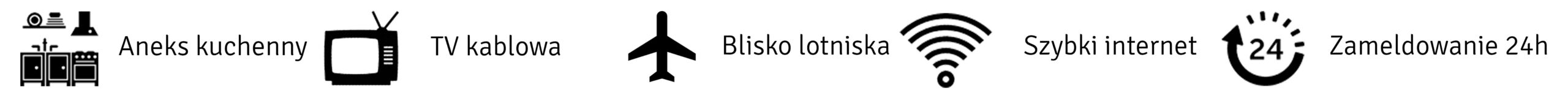 Dodatkowo w mieszkaniu jest 40″ TV z pakietem telewizji kablowej, dwie szafy, pralka, przybory do prasowania i wszystko co potrzebne do komfortowego pobytu.